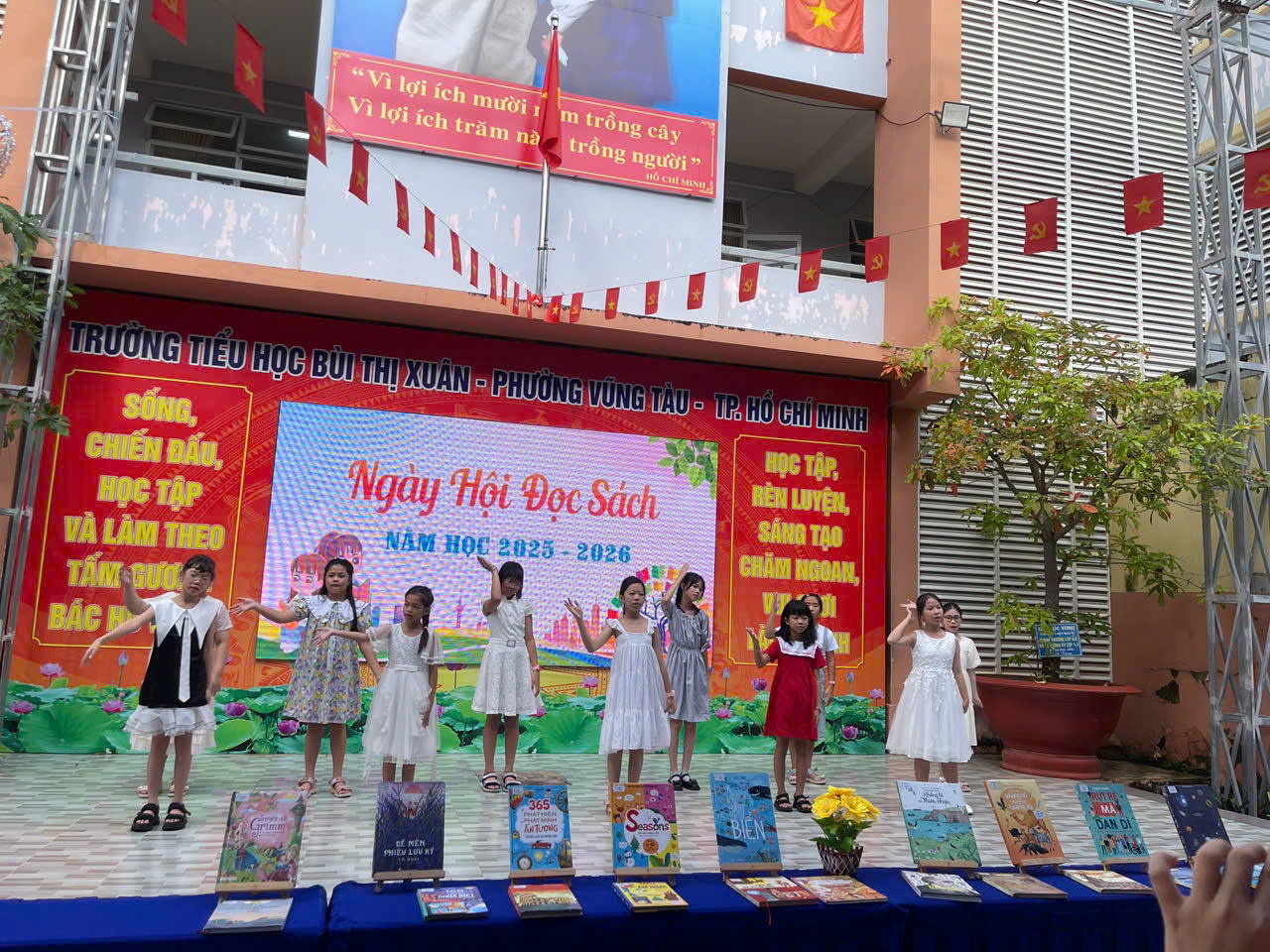 Sáng thứ hai, ngày 27/10/2025. Thư viện P.Vũng Tàu phối hợp cùng nhà trường tổ chức Ngày Hội đọc sách cho các thầy cô giáo cùng toàn thể các em học sinh TẠI TRƯỜNG TH BÙI THỊ XUÂN. Chương trình với sự tham dự của Ban giám hiệu,diễn giả Thái Song Khê, Quý thầy cô giáo, Quý phụ huynh cùng hơn 1500 em học sinh của trường. Thư viện đã giới thiệu đến học sinh của trường trên 1.500 bản sách với nội dung phong phú, đa dạng dành cho lứa tuổi thiếu nhi với các loại sách như: sách kỹ năng, bồi dưỡng trí tuệ, truyện kể danh nhân thế giới, gương học sinh chăm ngoan hiếu thảo, truyện tranh lịch sử… Trong chương trình, các em HS khám phá những cuốn sách do Thư viện luân chuyển lưu động và tham gia các trò chơi cùng diễn giả trong trò chơi ngôn ngữ, đố chữ, đố hình, các câu hỏi liên quan… Sau đây là một số hình ảnh hoạt động tại trường.